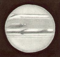 Jupiter, drawn by Ken Clarke, as viewed through a 10″ F4.3 Reflector, 308x. w1=170deg, w2=141.9deg, seeing 3-5, at 21:22 UTC on March 24th, 1991
