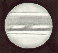 Jupiter, drawn by Ken Clarke, as viewed through a 10″ F4.3 Reflector, 308x. w1=164eg, w2=283deg, seeing 4/5, at 20:16 UTC on May 2nd, 1991